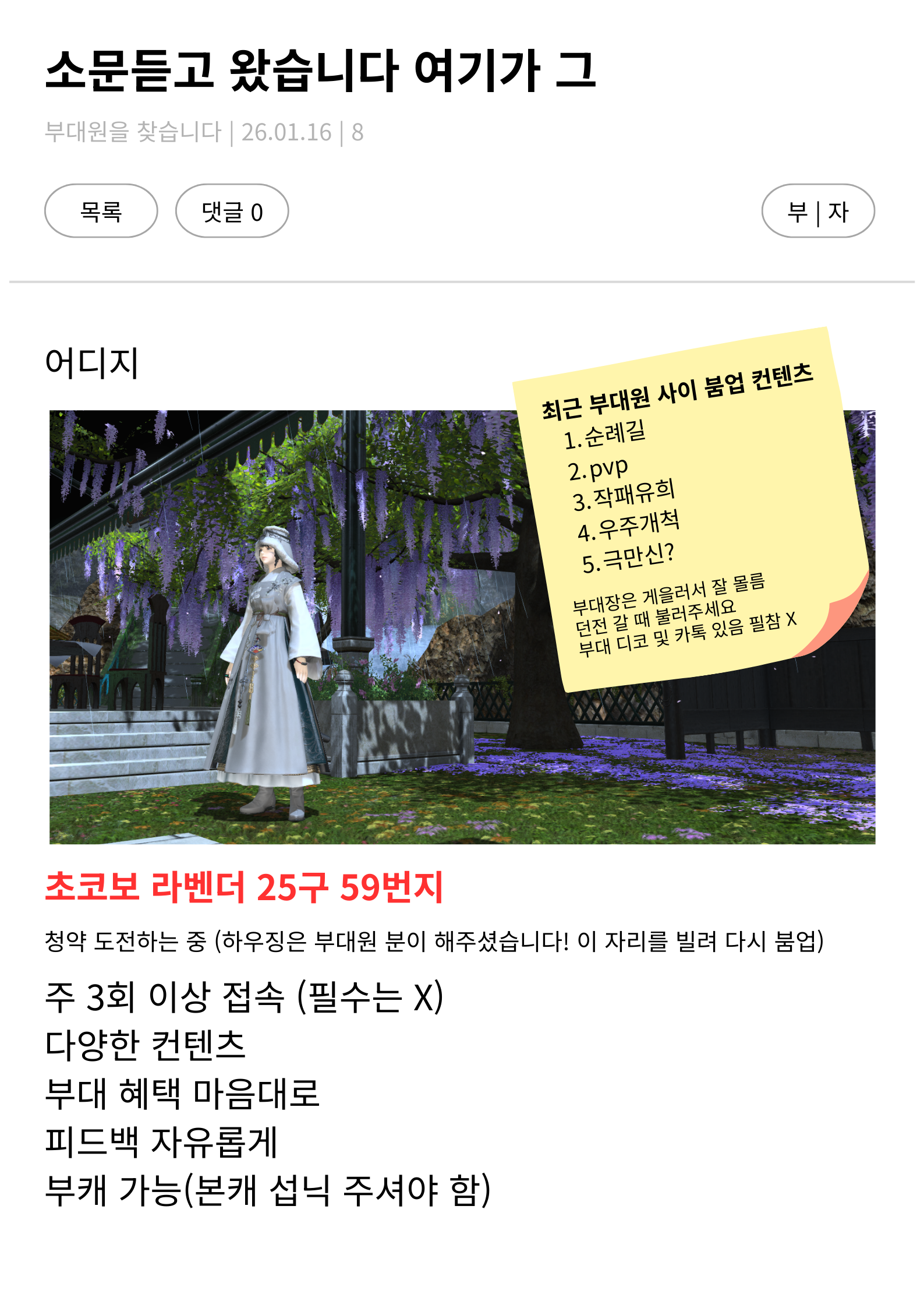 [초코보] 로웨나표비타민<<씨>>에서 부대원을 찾습니다